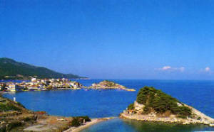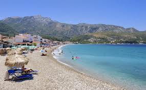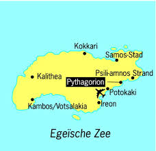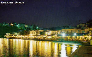 Κοκκάρι – Het dorpje Kokkári ligt aan de noordkust van Samos op een afstand van 9,5 kilometer ten noordwesten van de hoofdstad Vathý. Het schilderachtige, kenmerkende vissershaventje, waarvan de foto in elke reisbrochure prijkt, diende in het verleden als haven voor het hoger gelegen dorpje Mytilíni. De geschiedenis van Kokkári gaat terug naar het begin van de 19e eeuw. De oude dorpskern werd gesticht op de lage westelijke kaap, die door een landtong verbonden is met een klein rotseilandje (waarop nu een tiental huizen staat). Vanaf ongeveer 1850 begon Kokkári zich geleidelijk aan uit te breiden; in het begin voornamelijk over de ruïnes van een lang verlaten dorp in de richting van de oostelijker gelegen ‘Téppes’helling. En later, met de opkomst van het toerisme omstreeks 1965, ook over de vruchtbare vlakte landinwaarts.